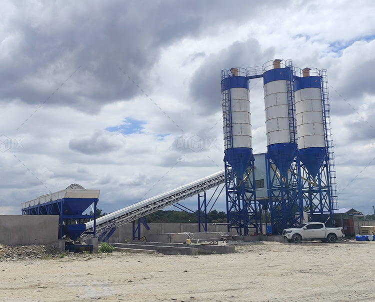 Concrete batching plant with capacity of 75 cubic meters, bucket feeding, increase the height of the equipment support in accordance with the site and the existing layout of the production line.